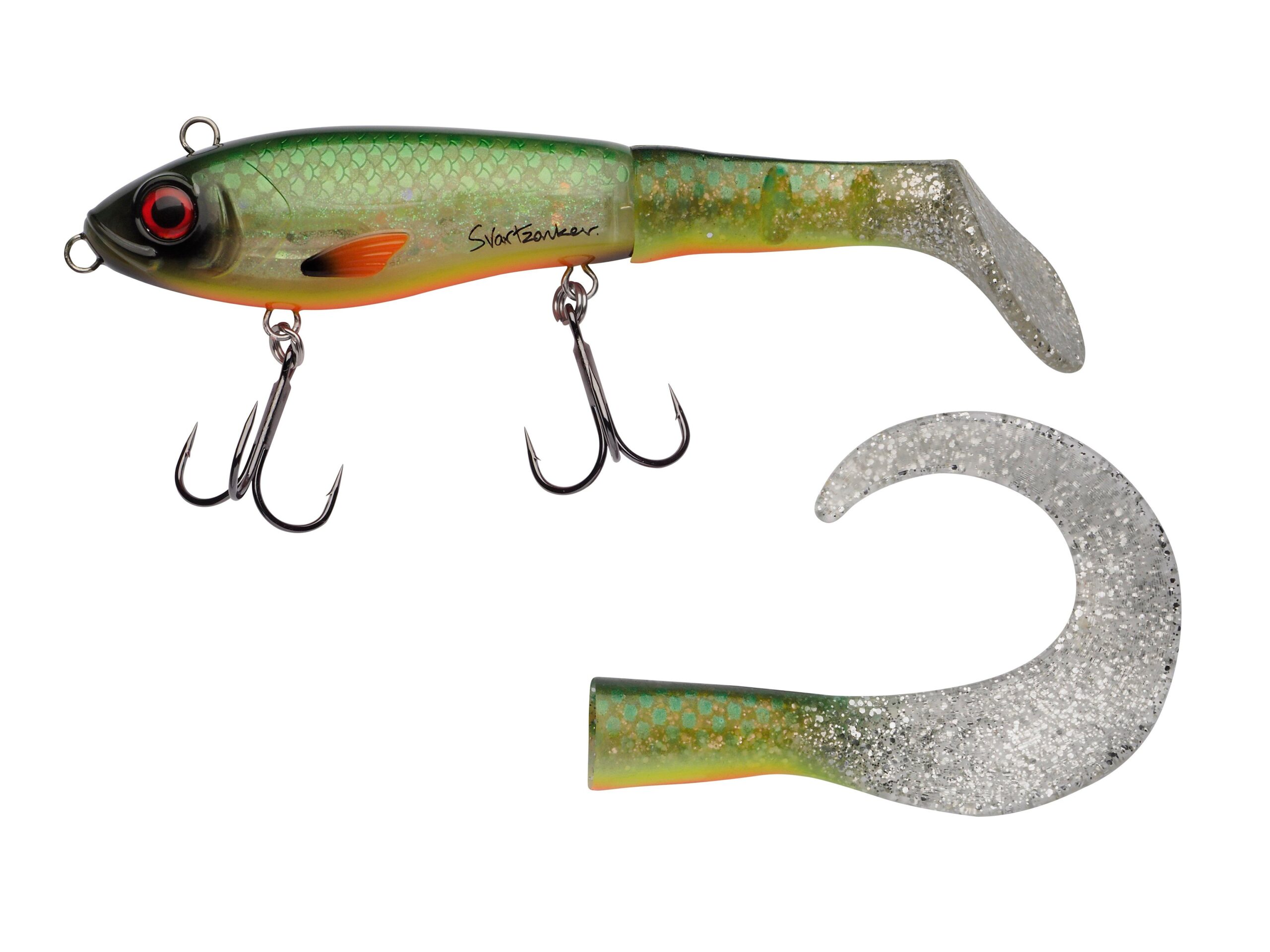 _Made of impact resistant ABS_Weighted with eco-friendly zinc_Stainless steel wire through for extra strength_Oversized stainless steel tail screw for easy installation of paddle/tail_Hand-painted_Eco-friendly phthalate-free plastisol_Designed in Sweden by Svartzonker_Extra strong stainless steel split rings_Super sharp Berkley® Fusion19™hooks