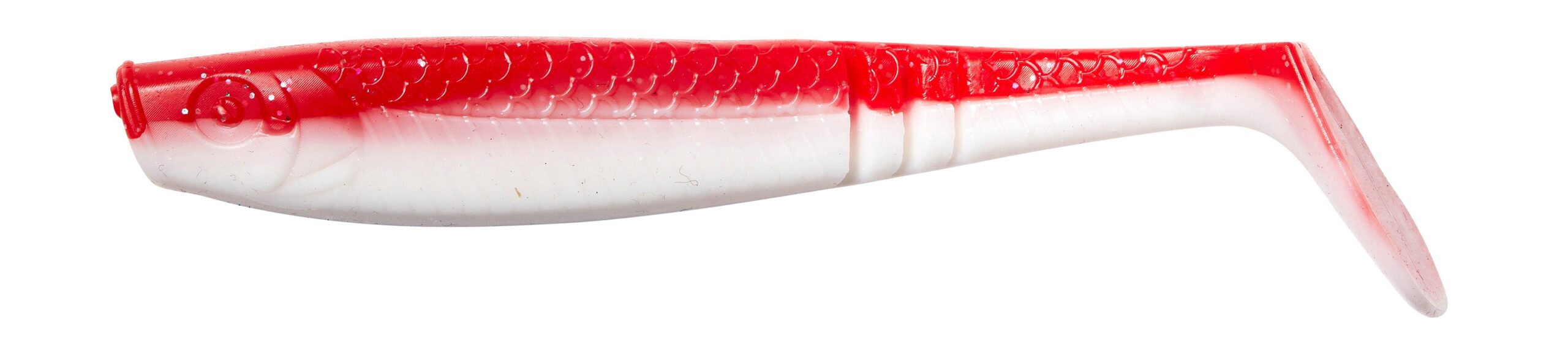 Shad soft Dam Shad Paddletail 10 cm rosu/alb pentru rapitori, apa dulce si sarata