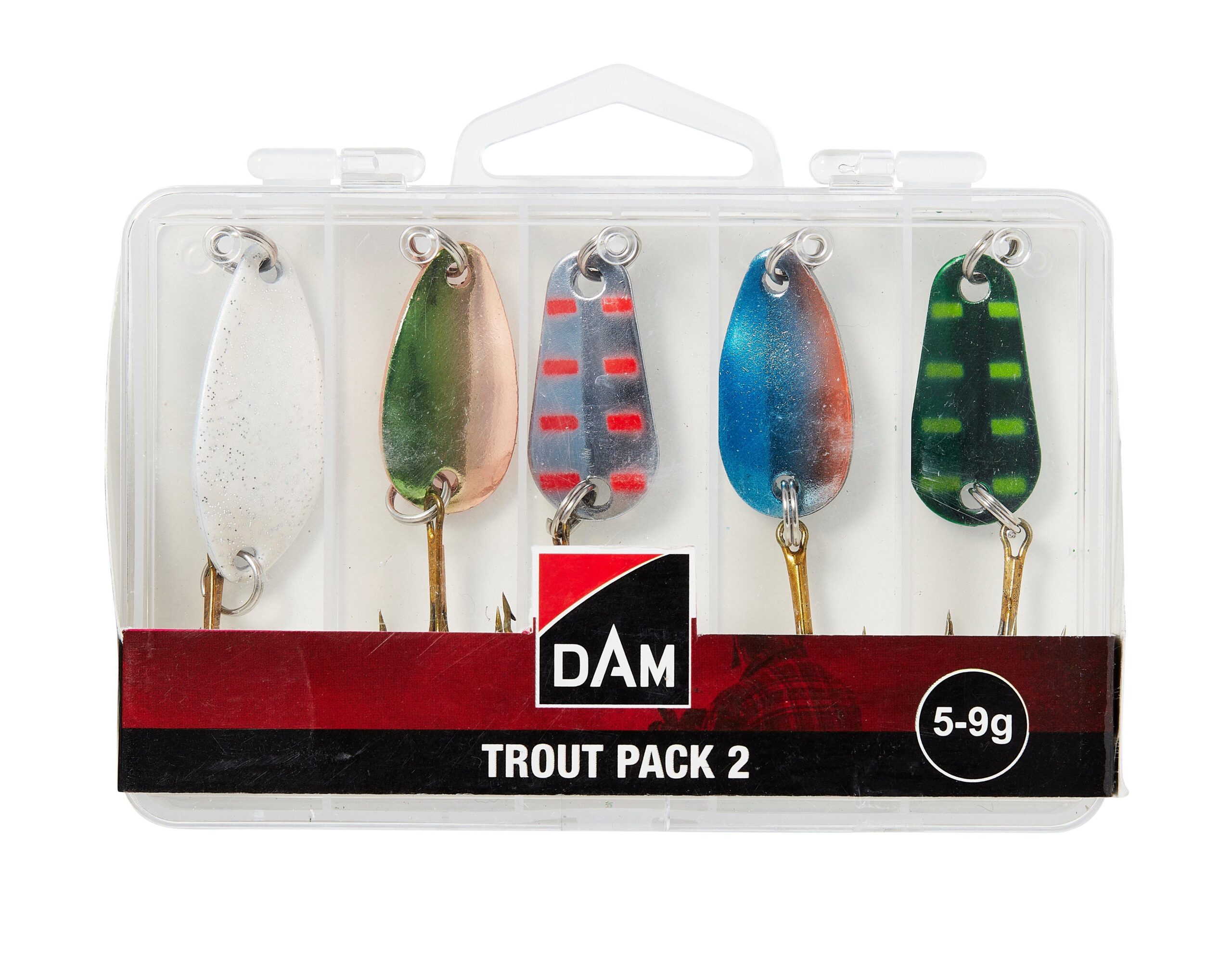 Kit naluci Dam Trout Pack 2, 5 bucati, culori variate, 5-9 g, cutie inclusa, pentru pastrav si biban