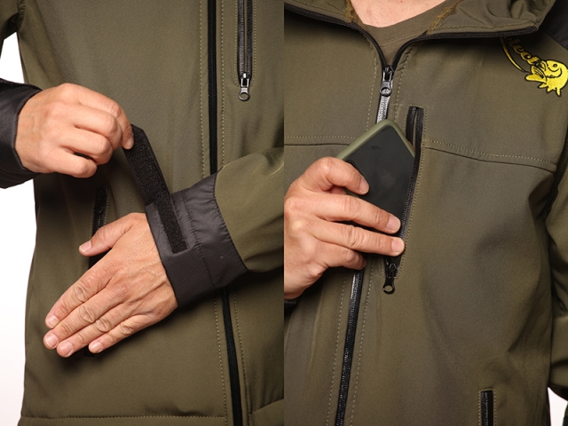 New Wave Softshell Fleece Insulated Green/Black Jacket este o jacheta confectionata din material softshell care asigura impermeabilitate DWR (Durable Water Repellent) de 10.000mm coloana de apa si respirabilitate 3.000g/m2. Croiala speciala a fost gandita pentru a oferi pescarului o libertate mare de miscare. Dispune de trei buzunare frontale echipate cu fermoare rezistente la apa si vant mansete reglabile cu velcro si gluga. Jacheta este recomandata pentru perioada rece a sezonului de pescuit. CARACTERISTICI: *Impermeabilitate DWR: 10.000mm *Respirabilitate: 3.000g/m2/24h *Matlasata cu fleece pentru confort termic *Fermoare rezistente la vant si apa *Cusaturi sudate pentru impermeabilitate *Mansete reglabile cu velco *Intarita cu material Oxfort in zonele expuse uzurii *Rezistenta mare la uzura si spalari repetate. *Logoul Select Baits este brodat in zone vizibile usor de surprins in timpul sesiunilor foto cu capturi